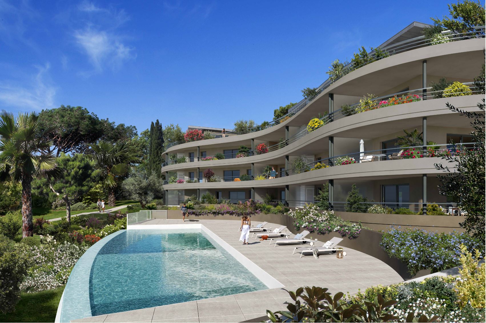 Conçu pour votre bien-être, chaque appartement bénéficie de larges baies vitrées ouvrant sur de belles terrasses. Vous profiterez de la piscine pour vous rafraîchir et de belles vues mer dans certains appartements.
