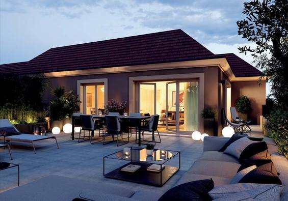 A l’abri des regards, les jardins privatifs et leurs terrasses viennent prolonger les appartements en créant des écrins d’intimité. A l’étage, les balcons idéalement orientés sud profitent d’un ensoleillement optimal. De spacieuses terrasses, pour certaines filantes, s’étendent en attique.
