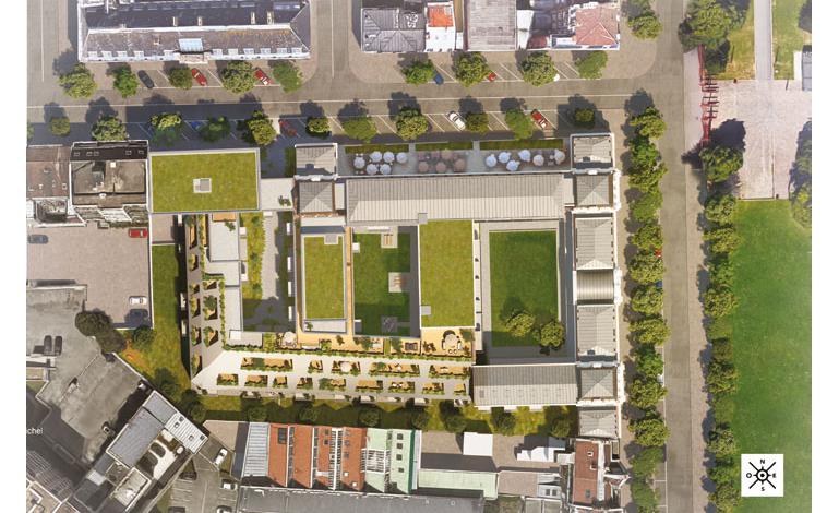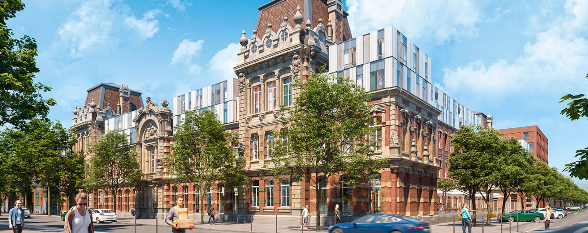 Sur ce site où résonnent encore les pas des lilloises, l’ancienne bâtisse épouse les formes de l’extension contemporaine dans une alchimie parfaite. Surplombées de trois hautes tourelles, les façades se drapent de riches ornementations et de briques. Cette architecture de caractère dévoile une cour patrimoniale, précieuse parenthèse au cœur de la ville.